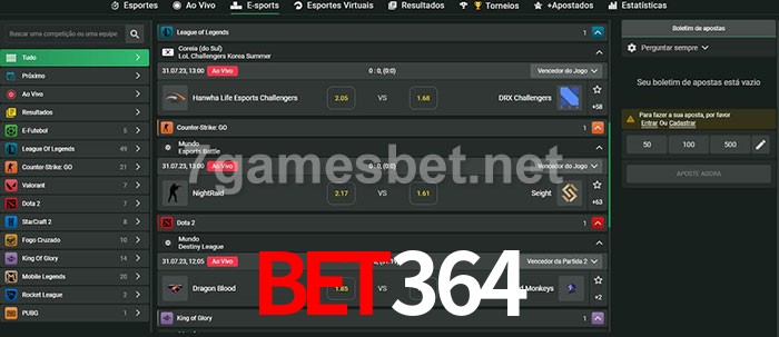 O Bet364 oferece uma grande seleção de opções de apostas em e-sports com probabilidades competitivas